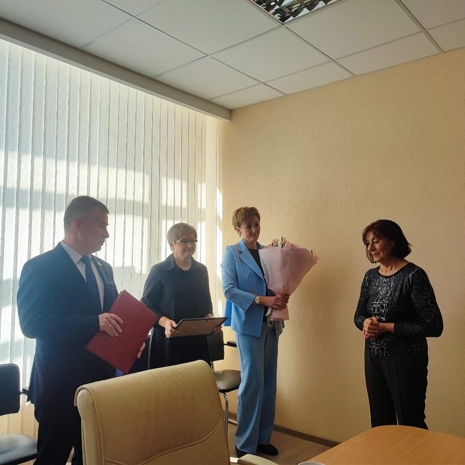 02.09.202527 августа 2025 г. в государственном учреждении «Национальный архив Республики Беларусь» чествовали ведущего архивиста отдела делопроизводства и формирования Национального архивного фонда Республики Беларусь Ролёнок Валентину Максимовну в связи с ее юбилеем. С поздравительным словом выступили директор архива А.К.Демянюк и его заместитель Е.А.Стуканова. Поздравить юбиляра также прибыли и представители государственных органов Республики Беларусь, курируемых Валентиной Максимовной - Национального статистического комитета и Министерства лесного хозяйства. За высокий профессионализм, конструктивное и плодотворное сотрудничество, большой личный вклад в организацию совместной работы представители Комитета государственного контроля вручили Валентине Максимовне юбилейную медаль «30 год Камітэту дзяржаўнага кантролю Рэспублікі Беларусь», а представители Департамента финансовых расследований - Благодарность за эффективное взаимодействие с органами финансовых расследований Комитета государственного контроля по вопросам архивного делопроизводства. К поздравлениям также присоединились сотрудники отдела и других структурных подразделений архива.