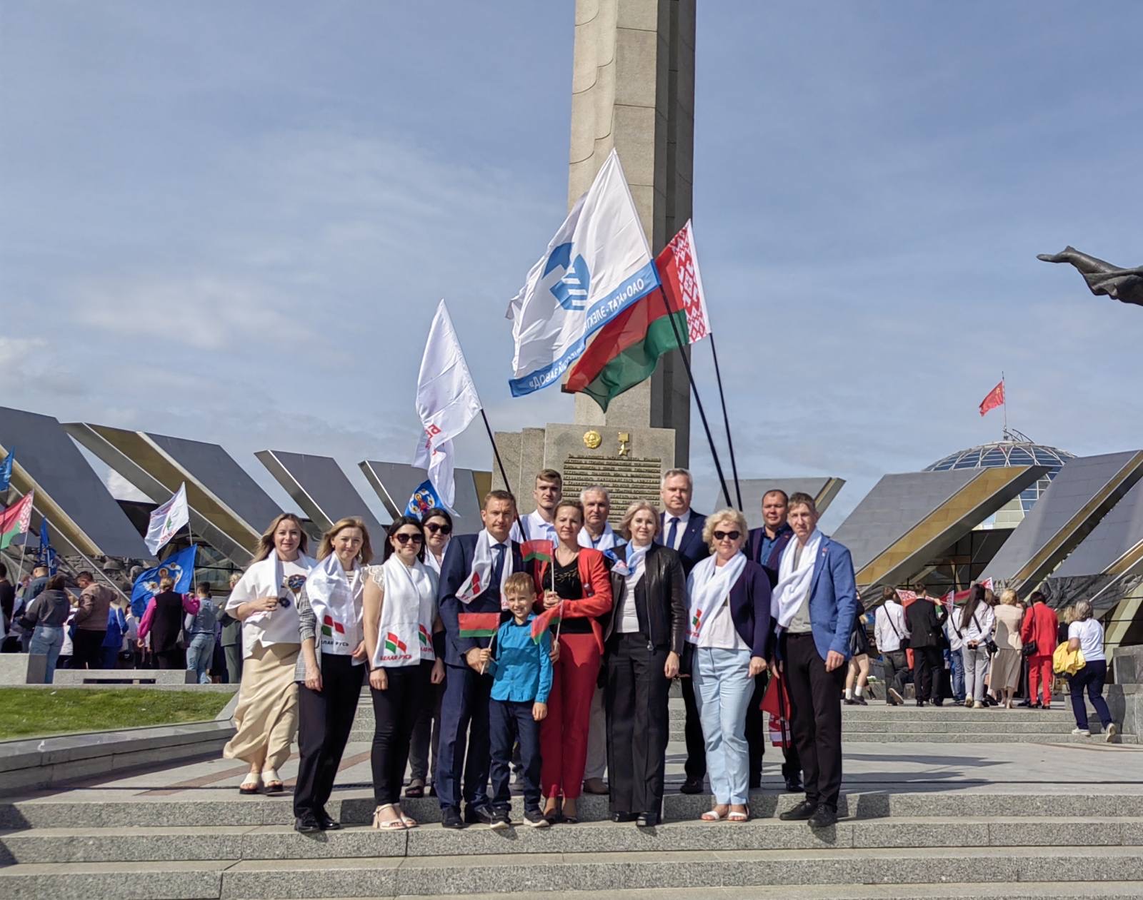 В рамках празднования у обелиска «Минск — город-герой» состоялась торжественная церемония возложения цветов, в которой принял участие главный инженер Национального архива Республики Беларусь, член первичной организации Республиканского общественного объединения «Белая Русь» В.А.Баранов.