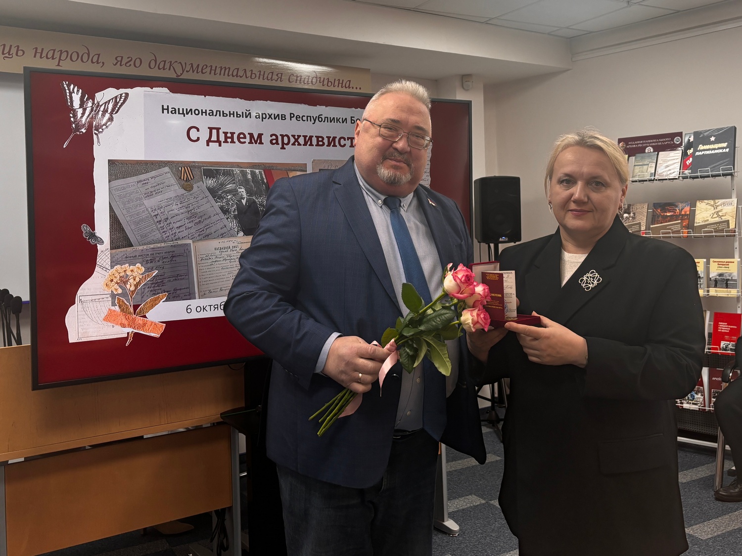 - Нагрудный знак Департамента по архивам и делопроизводству Министерства юстиции Республики Беларусь «Ганаровы архівіст Беларусі» был вручен Дорогуш И.В., заведующему отделом фондов личного происхождения;