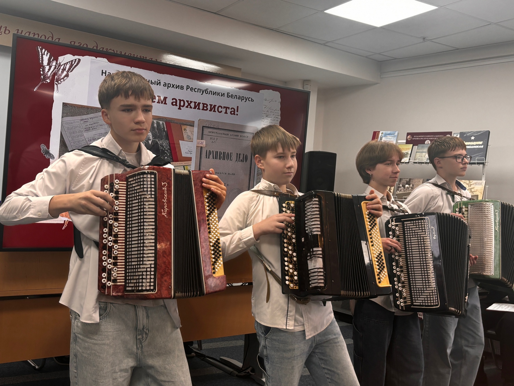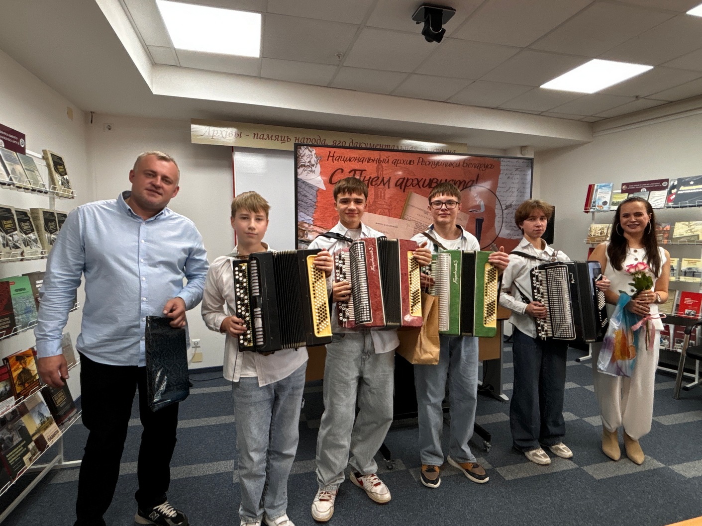 В праздничный день с музыкальными подарками перед архивистами выступили педагоги и учащиеся средней школы № 77 г.Минска.