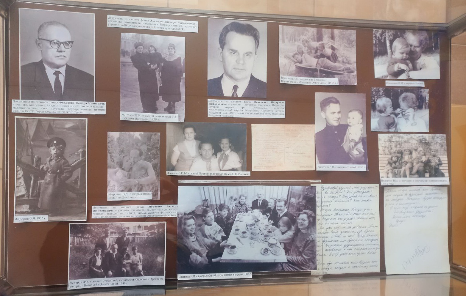 На выставке представлены документы из личных фондов государственных партийных и общественных деятелей, ученых Беларуси: Машерова П.М., Притыцкого С.О., Киселева Т.Я., Игнатенко И.М. и др., переданных на хранение в отдел фондов личного происхождения. Это индивидуальные фотографии в кругу семьи, на отдыхе, переписка с родными и близкими, поздравления с праздниками, детские рисунки, открытки, сделанные детьми для своих родителей.