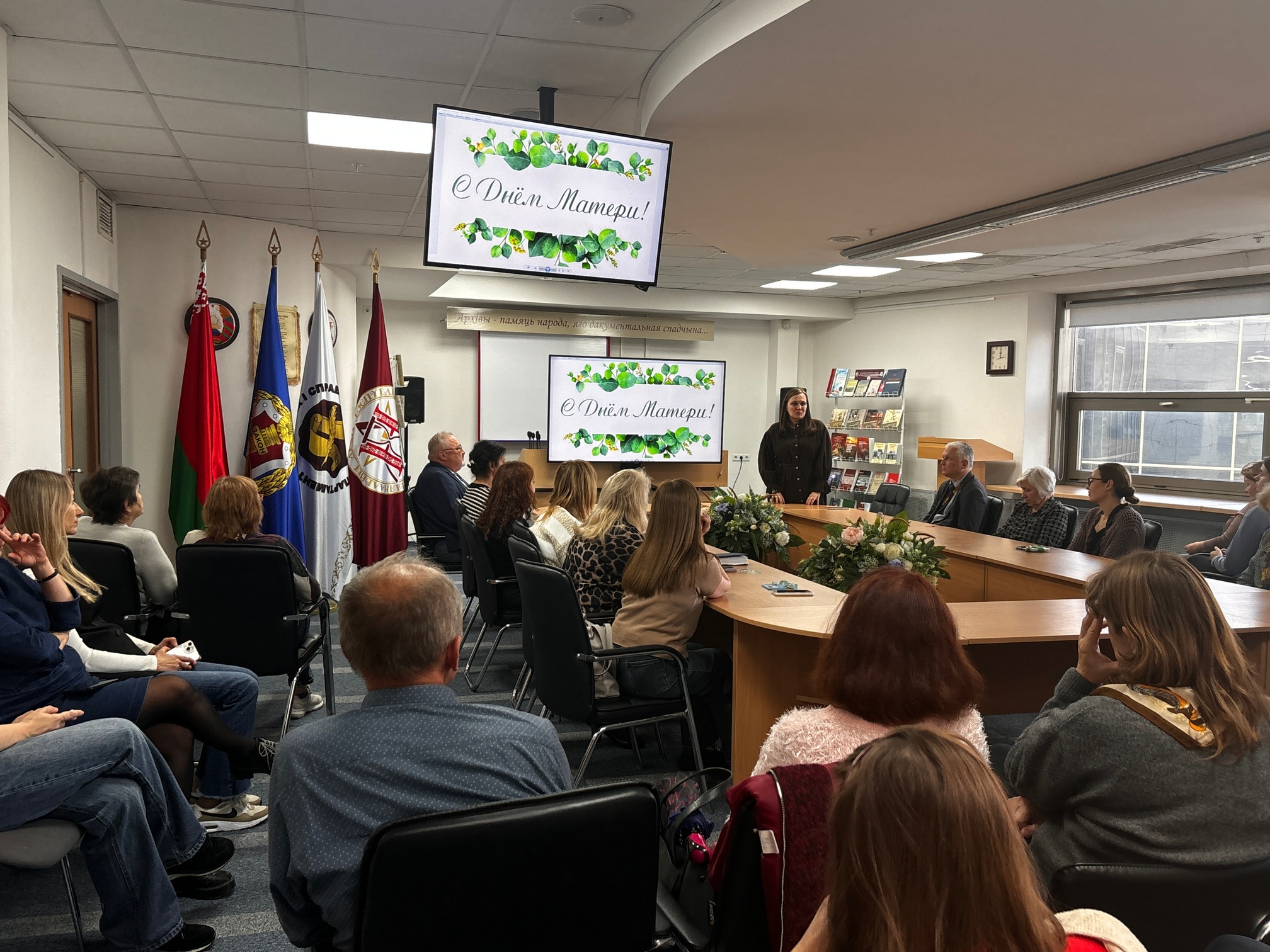 14 октября в НАРБ состоялось торжественное собрание коллектива в честь Дня Матери. С приветственным словом к работникам обратились директор НАРБ А.К.Демянюк и заместитель директора НАРБ Е.А.Стуканова.