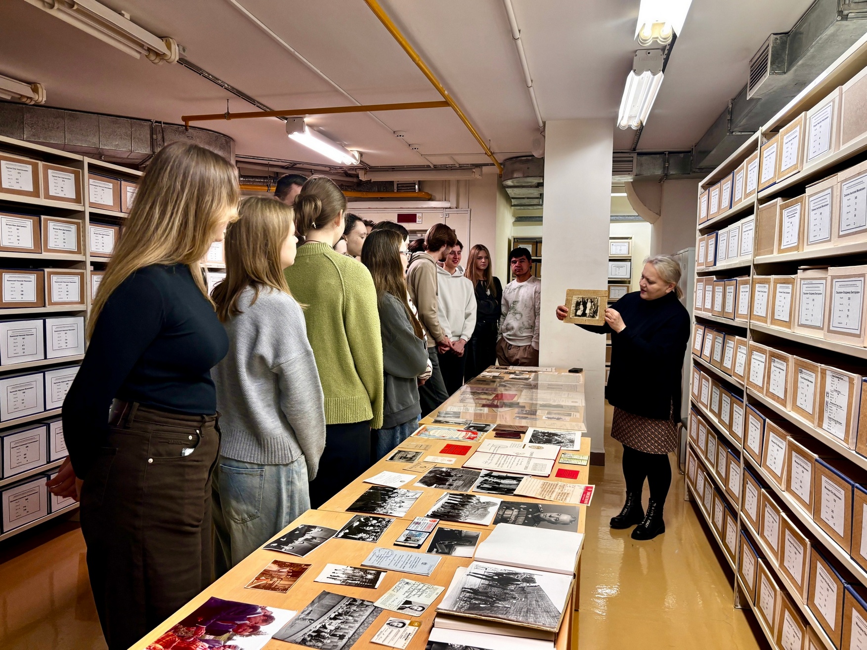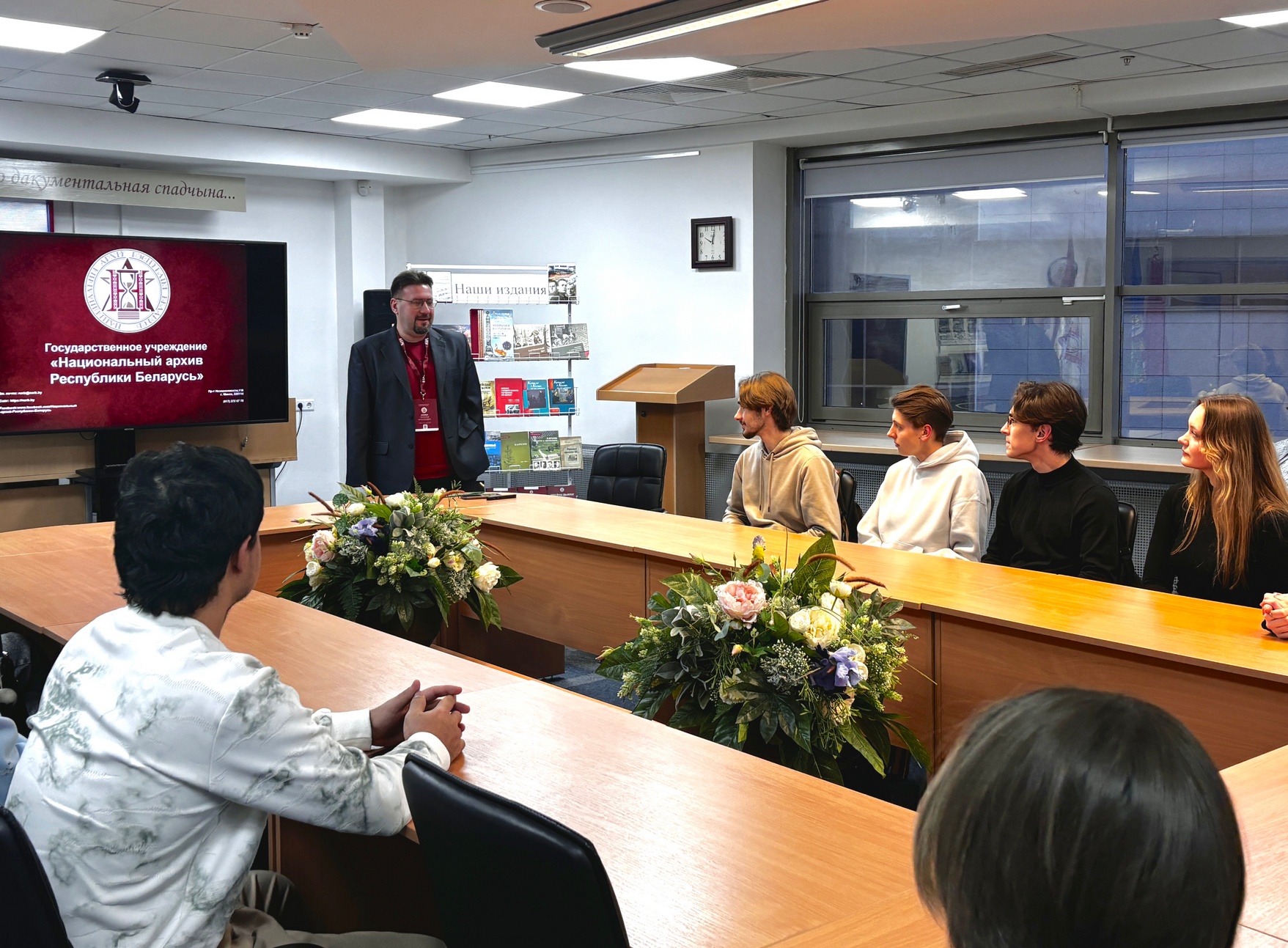 Для студентов были проведены обзорная лекция по истории НАРБ, демонстрация патриотического видеоролика, подготовленного архивистами с использованием ИИ, а также экскурсия по архиву с посещением архивохранилищ. Там ребята ознакомились с наиболее интересными и важными документами по новейшей истории Беларуси.