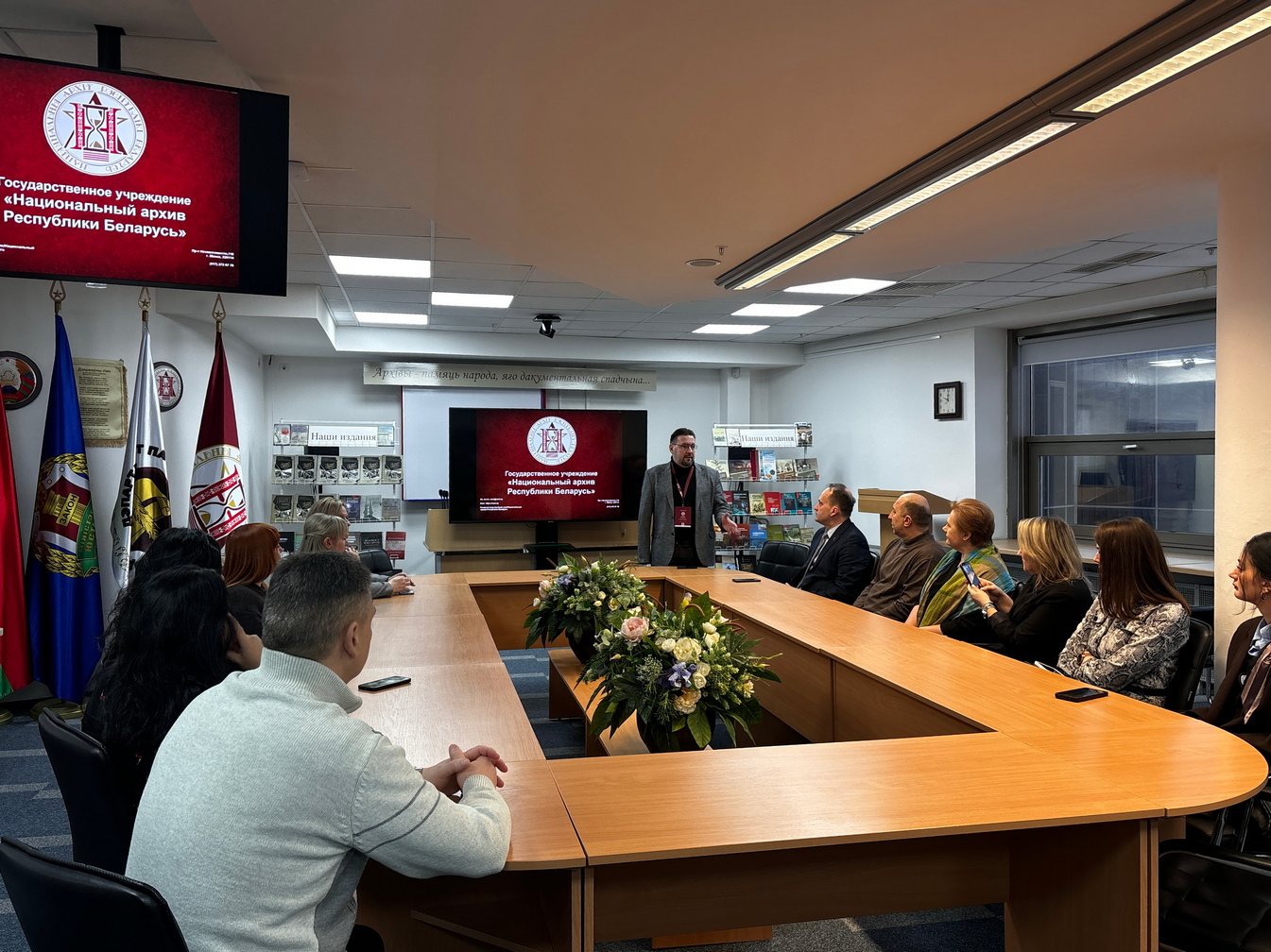 С приветственным словом к гостям обратился заместитель директора НАРБ, к.и.н. С.В.Кулинок. Также он рассказал об истории архива, основных направлениях его работы и составе документов.