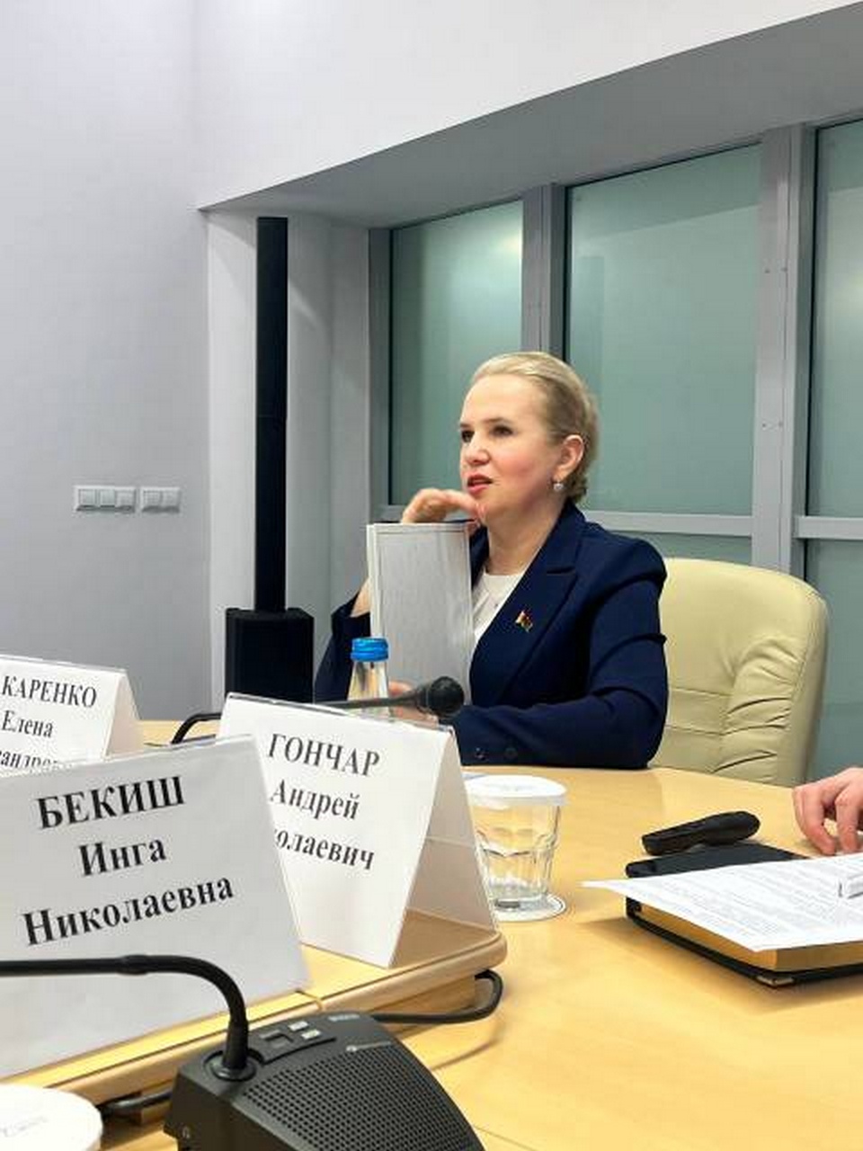 Директор Белорусского государственного архива-музея литературы и искусства Е.А.Макаренко выступила с рассказом о документах издательства «Беларусь» в фондах архива и о реализуемых совместных проектах. А также вручила поздравительный адрес главному редактору А.Н.Карлюкевичу.