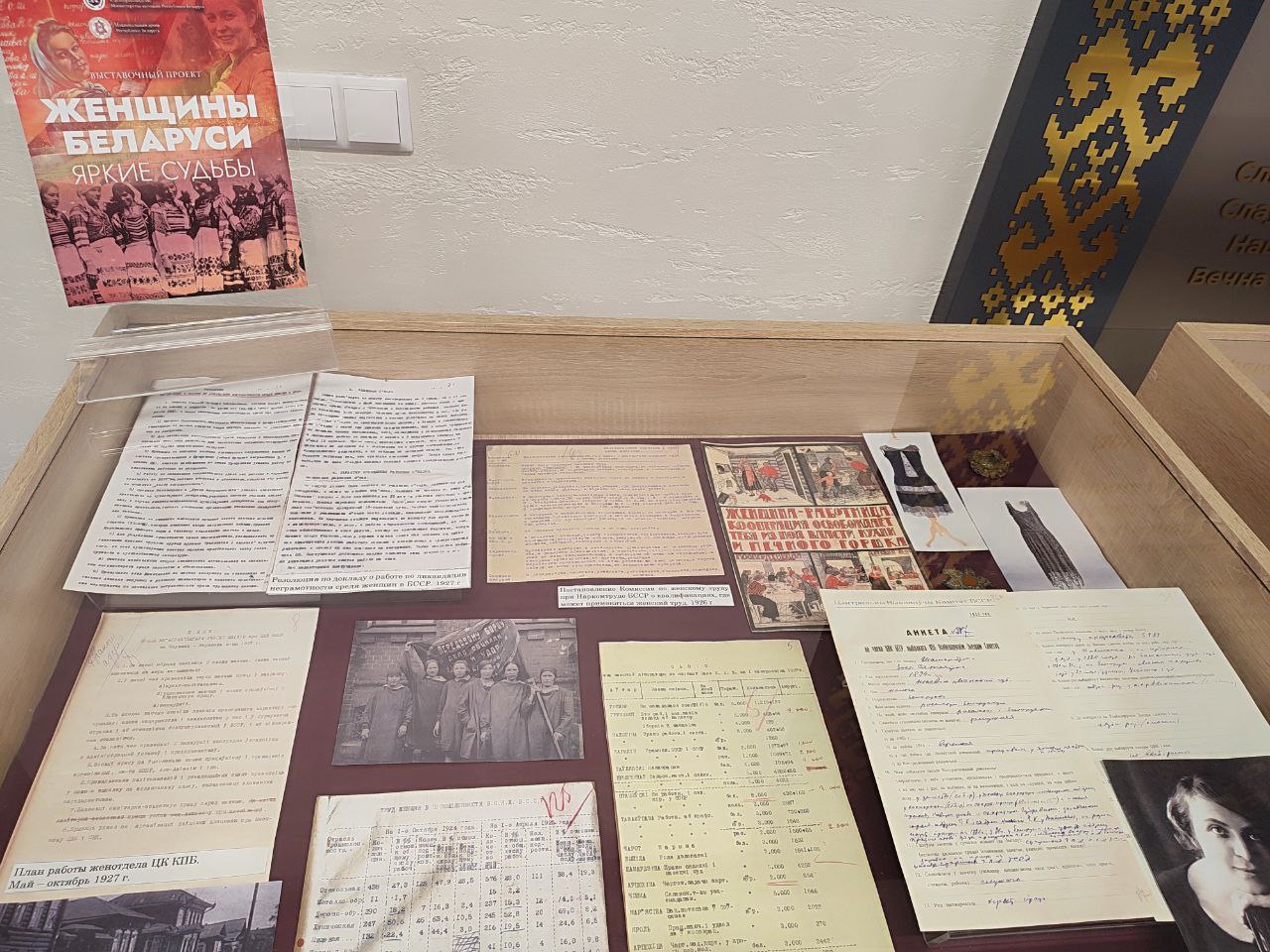 На выставке впервые представлены архивные документы: Планы работы женсекции ЦК МОПР; справочные данные о количестве женщин в КП(б)Б; Протокол открытия 2–го Всебелорусского съезда крестьянок и 1–го съезда крестьянок – евреек; материалы о состоянии работы среди женщин по союзам сельхозлесрабочих и промышленности ВСНХ; анкета по обследованию предприятий с целью изучения и улучшения условий женского труда; наградные листы и личные дела женщин - Героев Советского Союза; Указы о награждении и присвоении женщинам почетных званий; фотографии и плакаты.