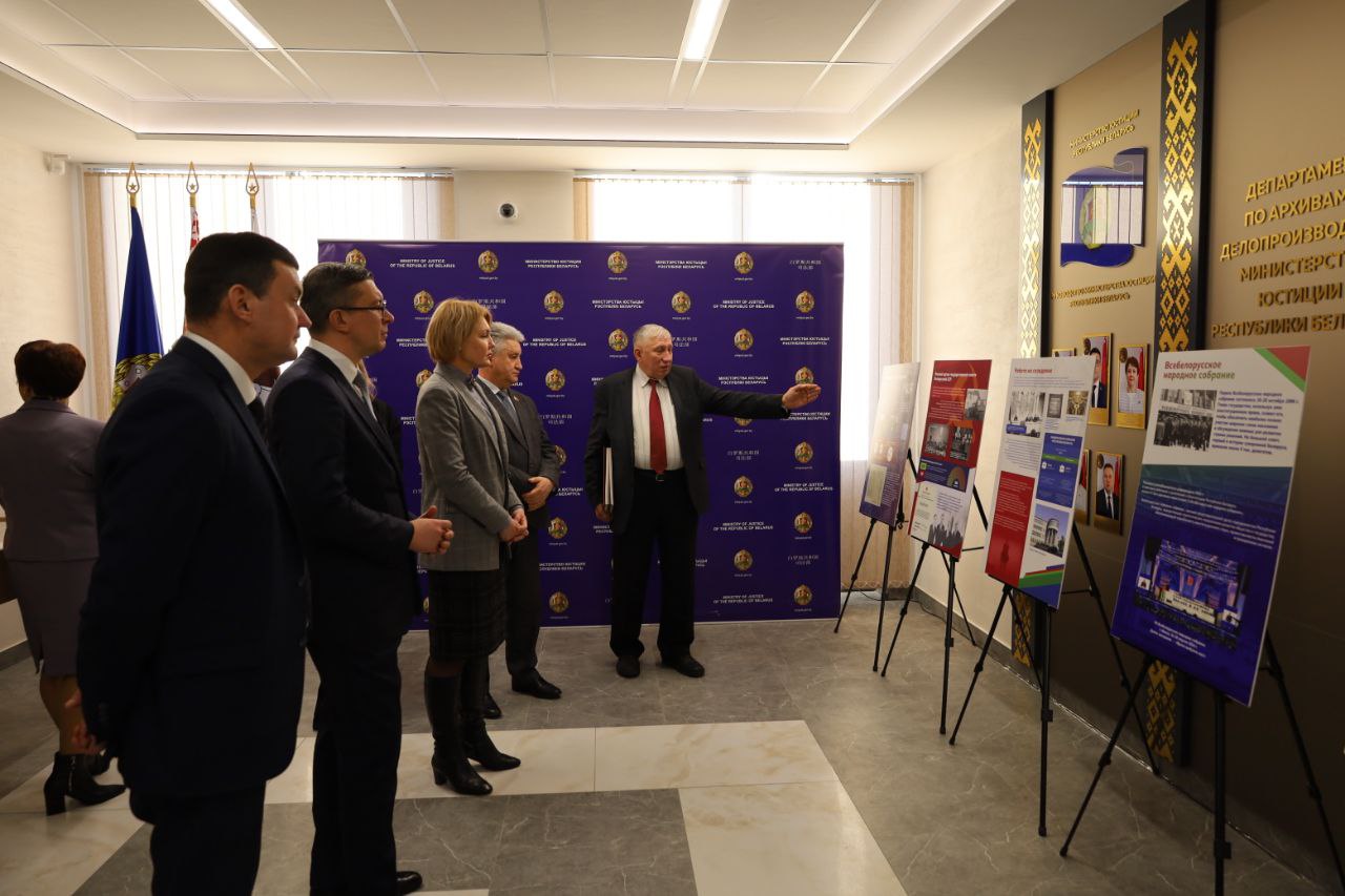 С документальной выставкой ознакомились Заместитель Главы Администрации Президента Республики Беларусь О.И.Чуприс, Заместитель Председателя Палаты представителей Национального собрания Республики Беларусь В.Д.Ипатов, Министр юстиции Республики Беларусь Е.И.Коваленко, другие участники коллегии.