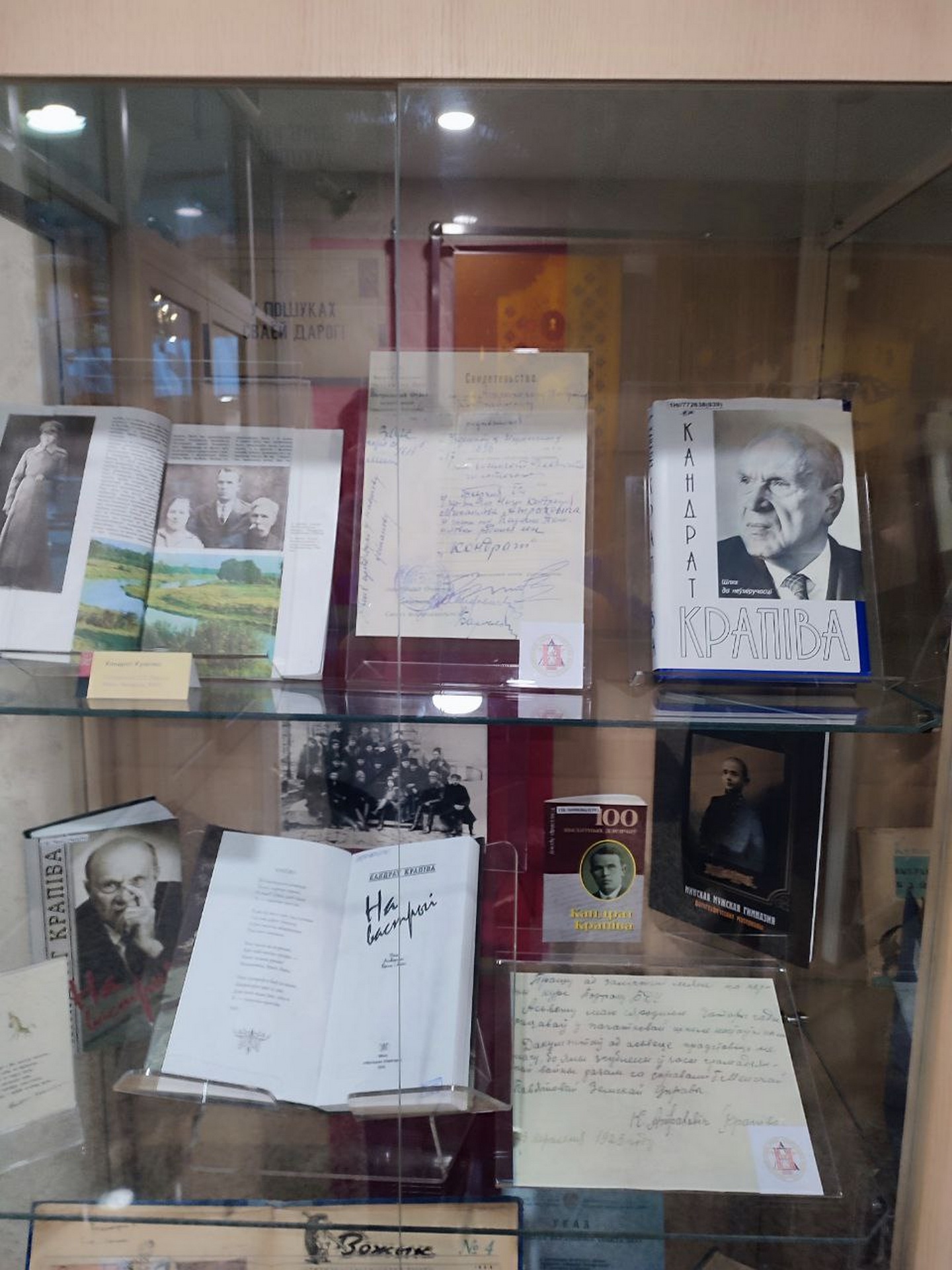 Издания и документы сгруппированы на выставке в хронологическом порядке, чтобы каждый посетитель получил возможность через книги, фотографии и архивные материалы представить историю жизни и творчества Кондрата Кондратовича, почувствовать и наглядно увидеть итоги его работы.