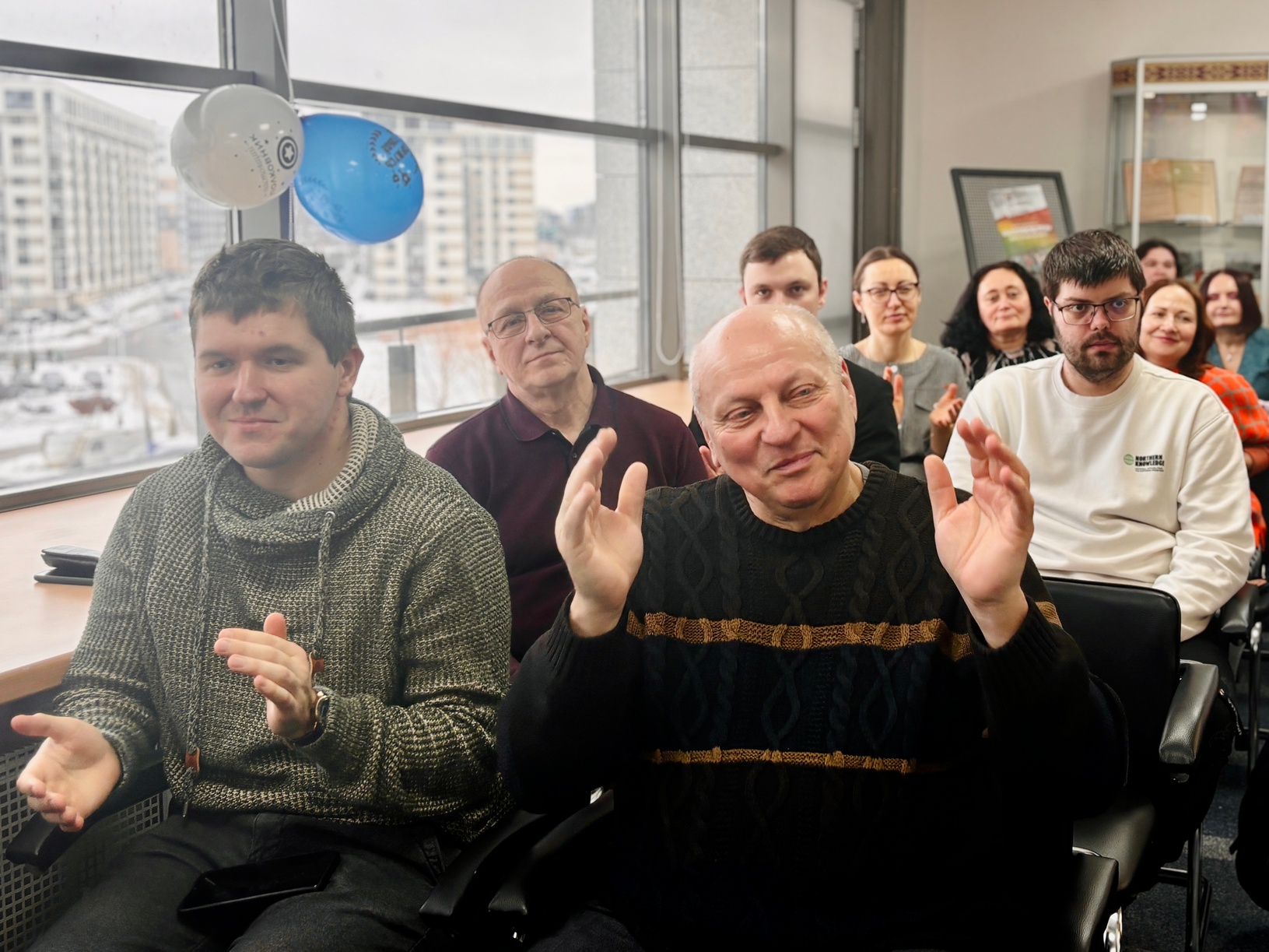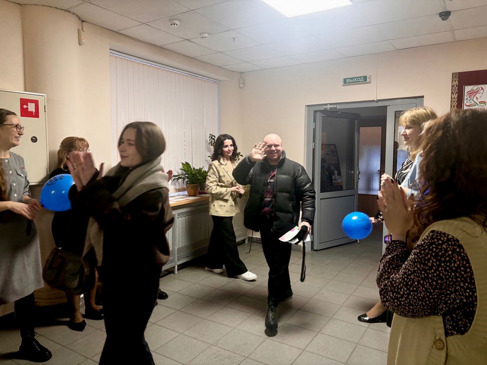 Поздравить мужчин архива прибыли и участники фотопрактикума «Позитив» Центральной библиотеки имени Янки Купалы г. Минска, с которым у НАРБ налажено плодотворное сотрудничество. Людмила Бондар, одна из участниц этого проекта, зачитала стих собственного сочинения:
