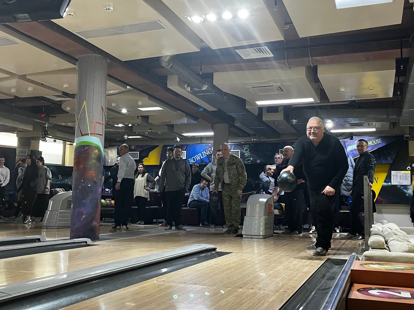 В продолжение праздника мужчины архива приняли участие в соревновании по боулингу. Главной целью турнира было не столько выявить сильнейших в этом виде спорта, сколько укрепить дух товарищества и взаимовыручки среди мужчин, подготовив их к любым вызовам.