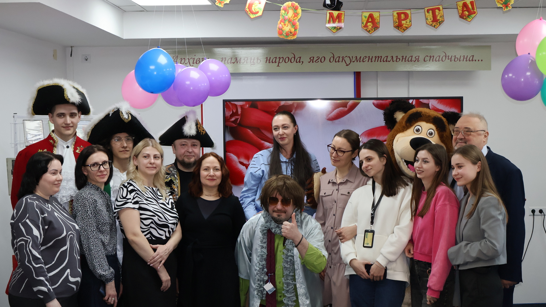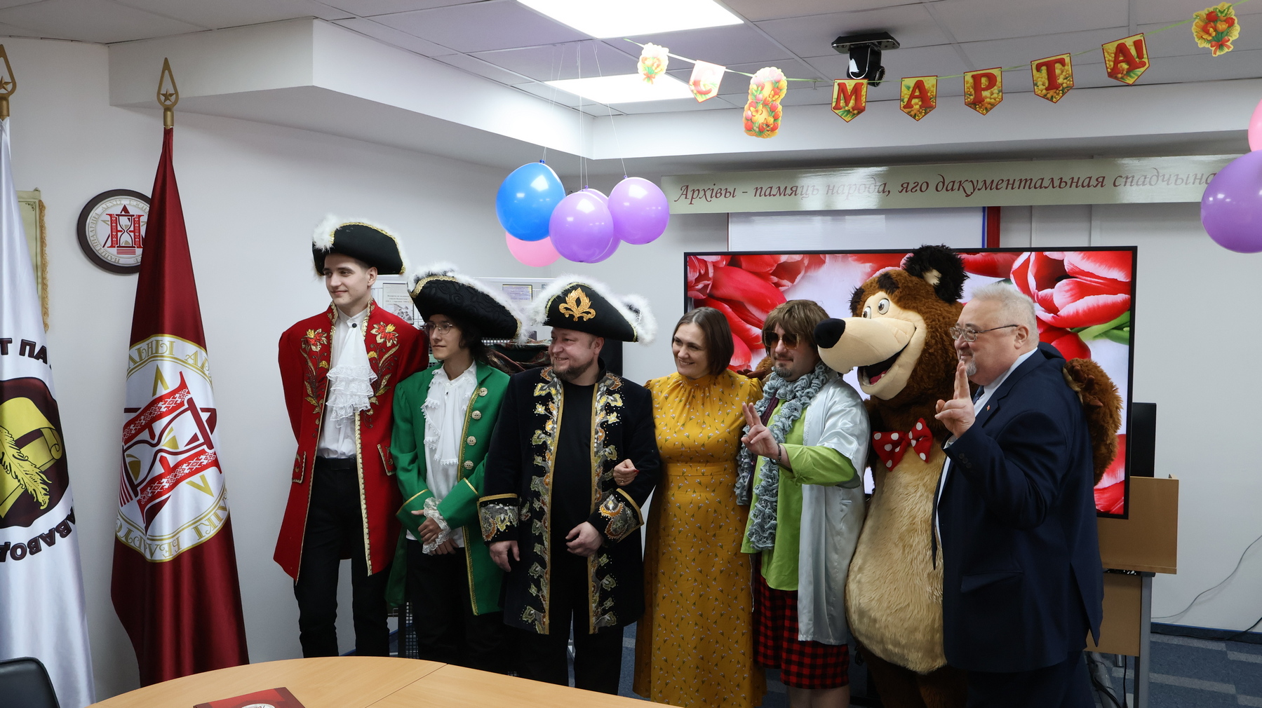 10.03.20269 марта 2026 г. в Национальном архиве Республики Беларусь (далее - НАРБ) прошли праздничные мероприятия ко Международному женскому дню. С самого утра в фойе архива женщин встречало руководство НАРБ, архивный Мишка и мужчины в праздничных костюмах, которые вручали женщинам НАРБ подарки.