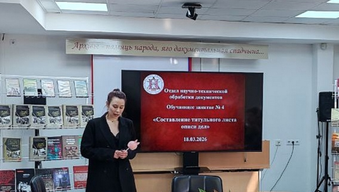 18 марта 2026 г. заведующим сектором планирования и методической работы отдела научно-технической обработки документов НАРБ Жук М.В. проведено обучающее занятие № 4 «Составление титульного листа описи дел».