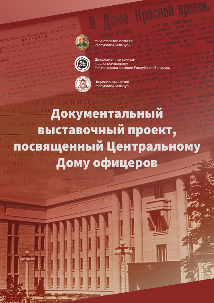 На экспозиции, организованной архивом, представлены копии архивных документов, посвященные истории создания Дома Красной Армии: Протокол заседания СНК БССР об изыскании средств для организации в Минске Дома Красной Армии; Постановление СНК БССР о ходе строительства Дома Красной Армии; Протокол Бюро ЦК КП(б) Б об открытии Дома Красной Армии; Указ Президиума Верховного Совета БССР о награждении Окружного Дома офицеров Почетной Грамотой Верховного Совета Белорусской ССР и др.