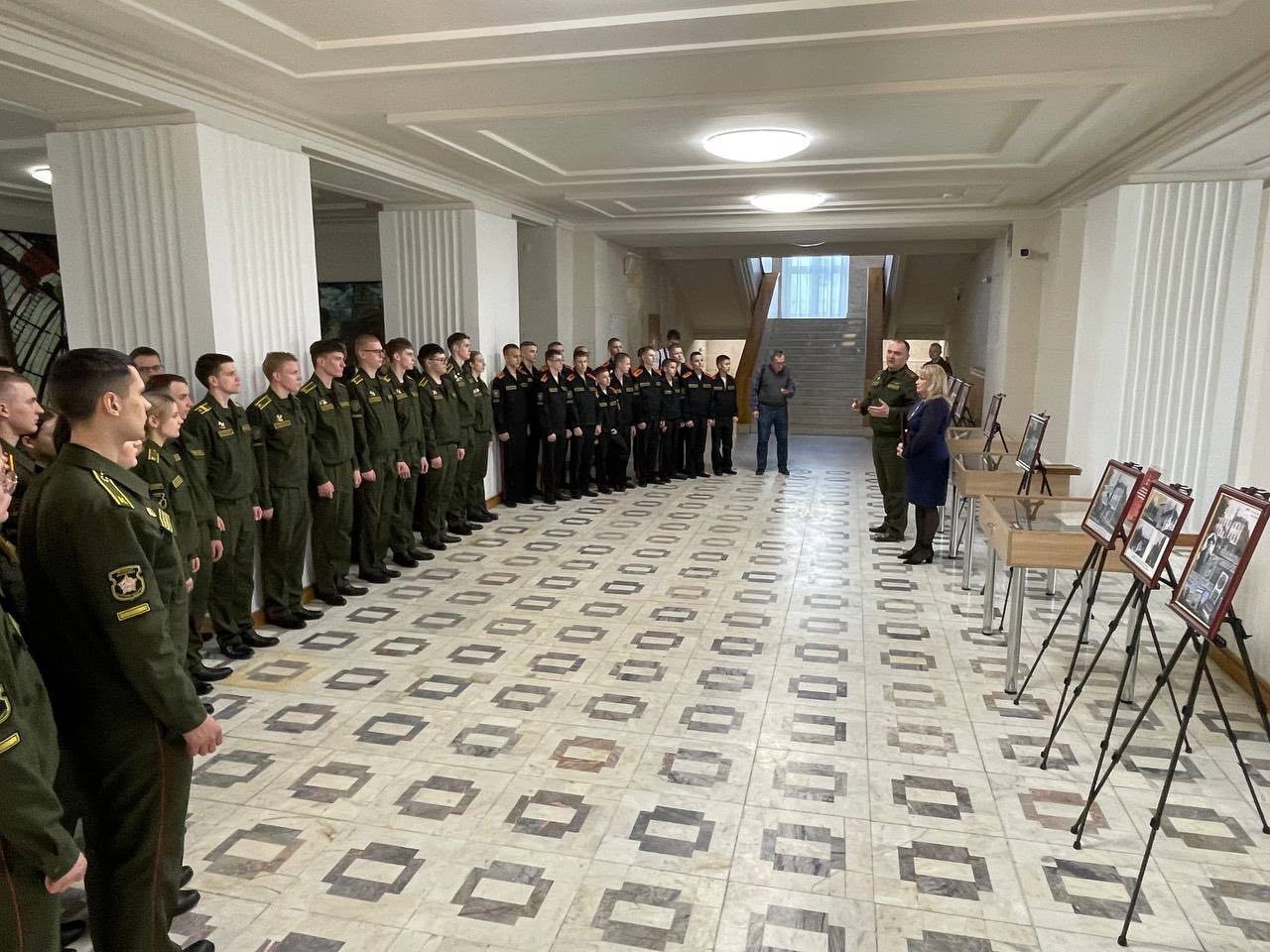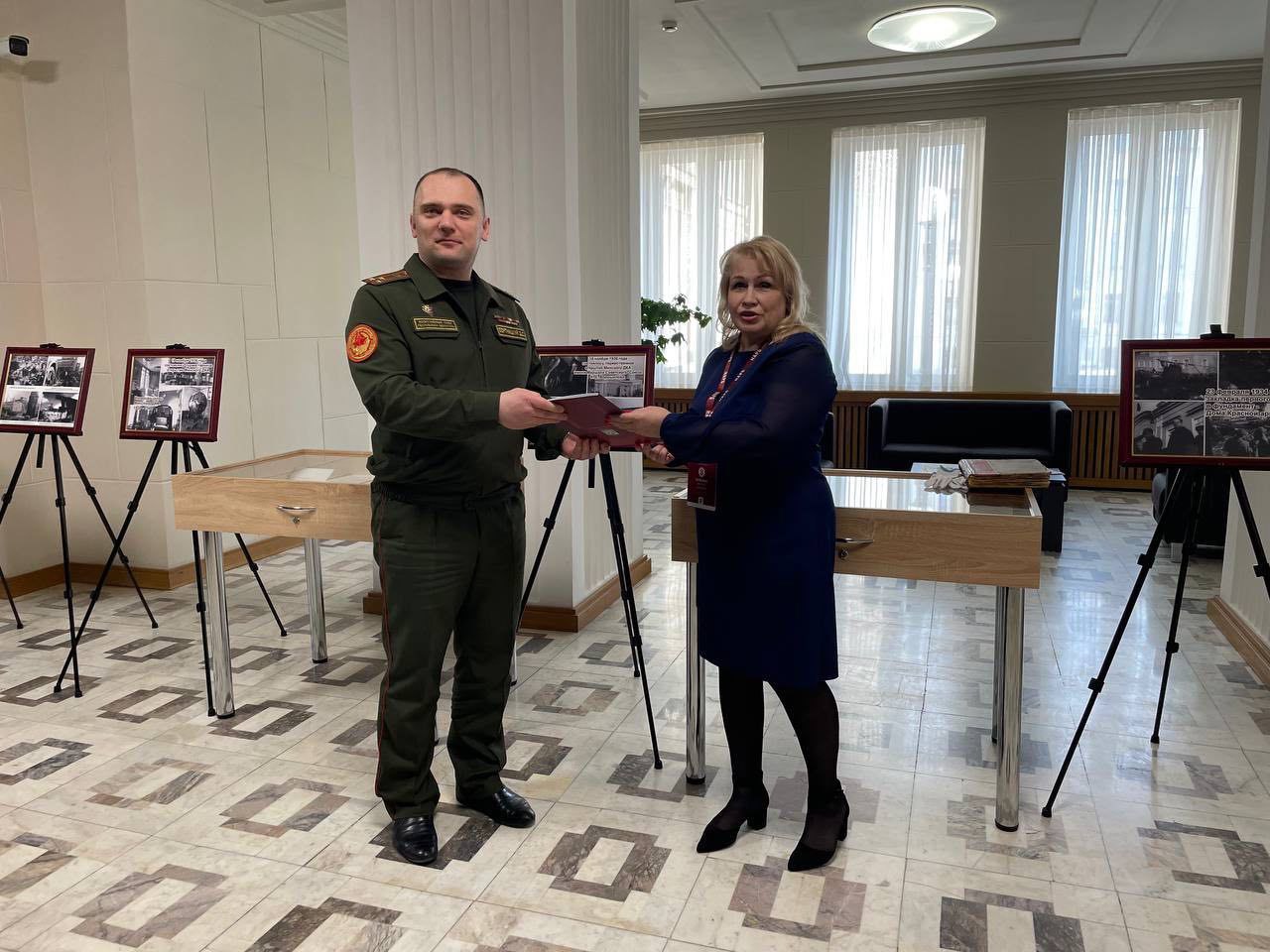 Заведующий отделом Национального архива М.А.Старостенко дополнила встречу глубоким историческим контекстом. В своем выступлении она раскрыла малоизвестные страницы истории здания Центрального Дома офицеров — памятника архитектуры, который на протяжении десятилетий остается символом армейской культуры. Важным моментом для будущего музея Дома офицеров стала передача в дар копий уникальных архивных документов НАРБ, которые показывают ключевые этапы развития ЦДО и жизнь минского гарнизона в разные исторические периоды.