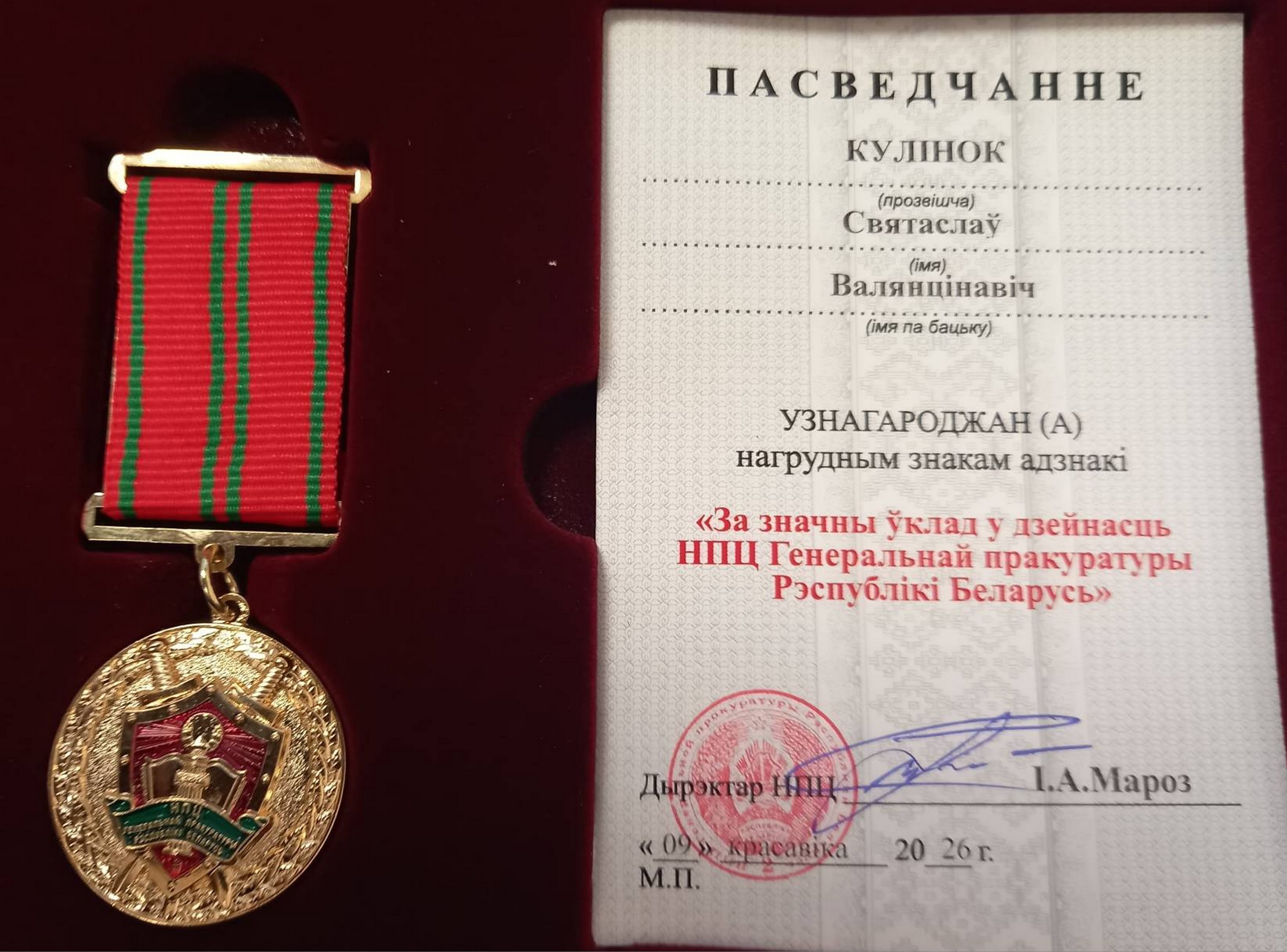Также за личный вклад в изучение темы геноцида С.В.Кулинок был награжден нагрудным знаком отличия НПЦ.
